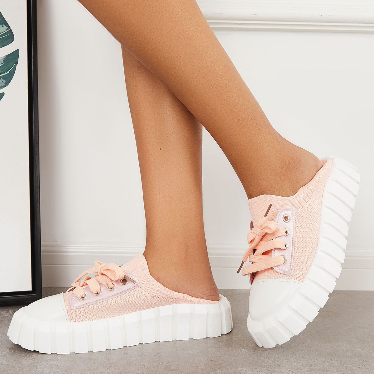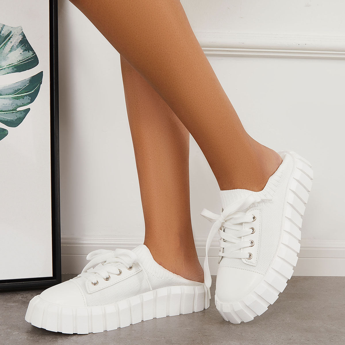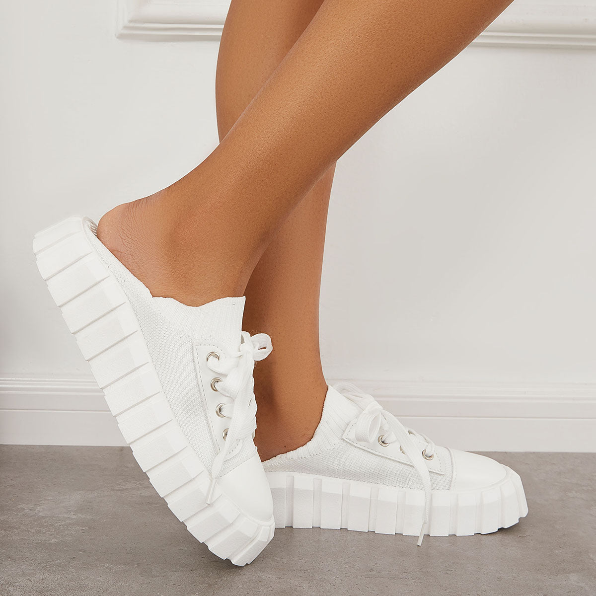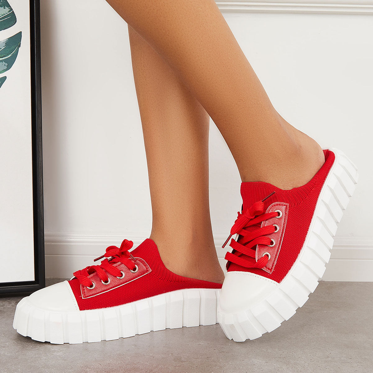 • Canvas Mule Sneakers Platform Lug Sole Heel Walking Shoes