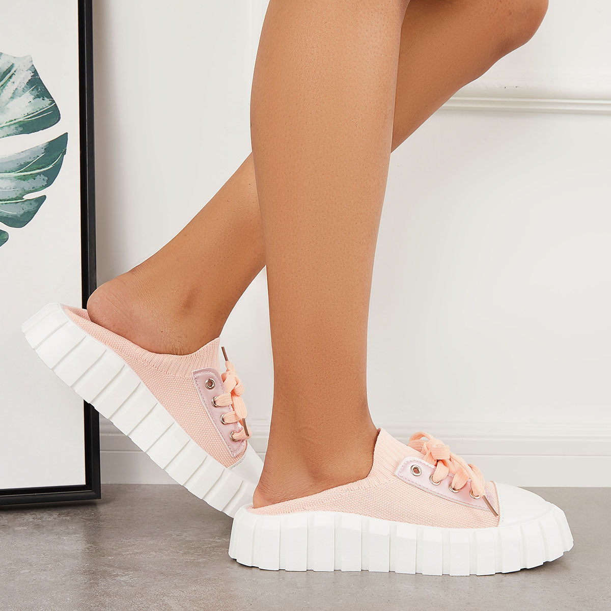 Canvas Mule Sneakers Platform Lug Sole Heel Walking Shoes