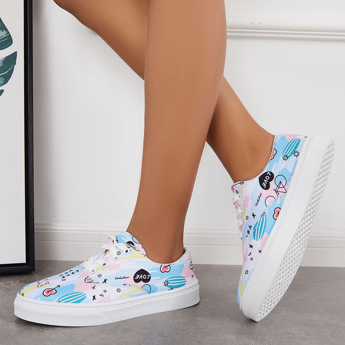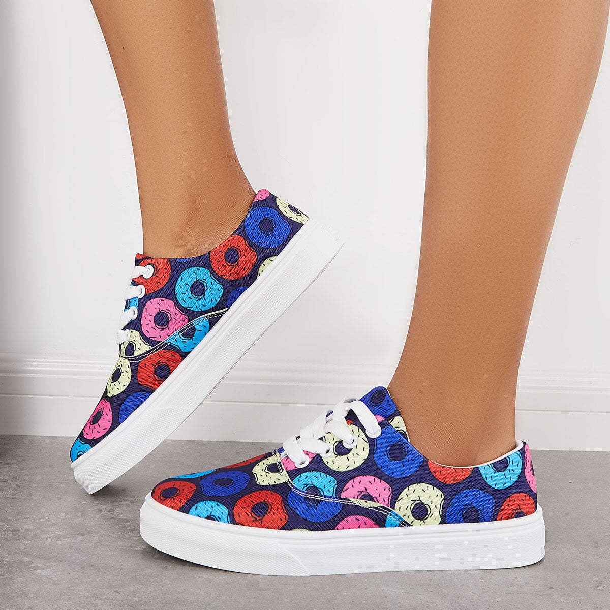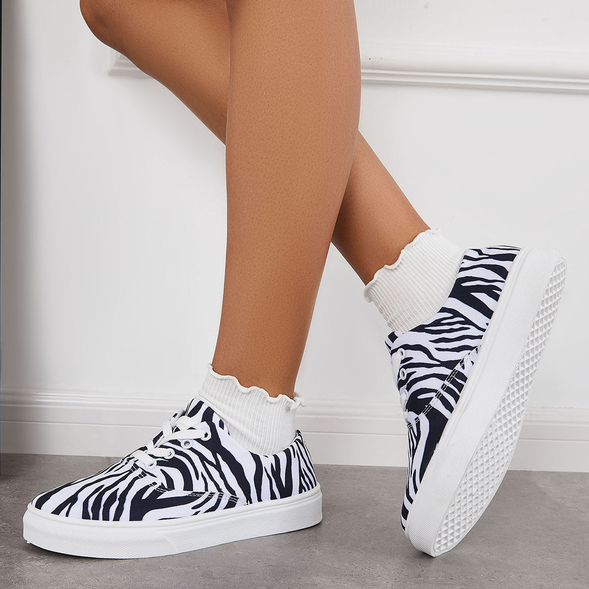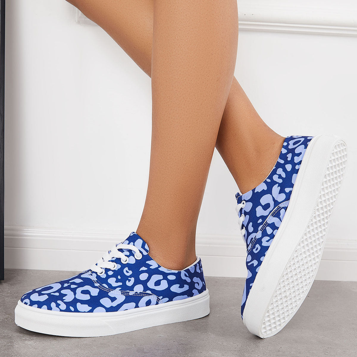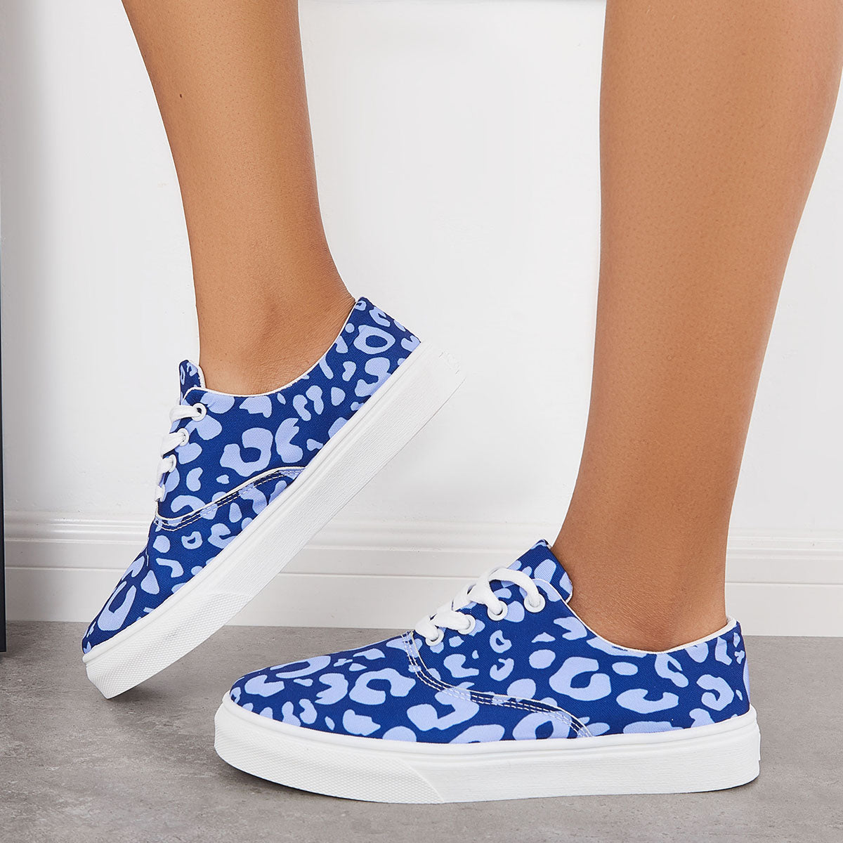Canvas Lace Up Sneakers Flat Heel Walking Shoes