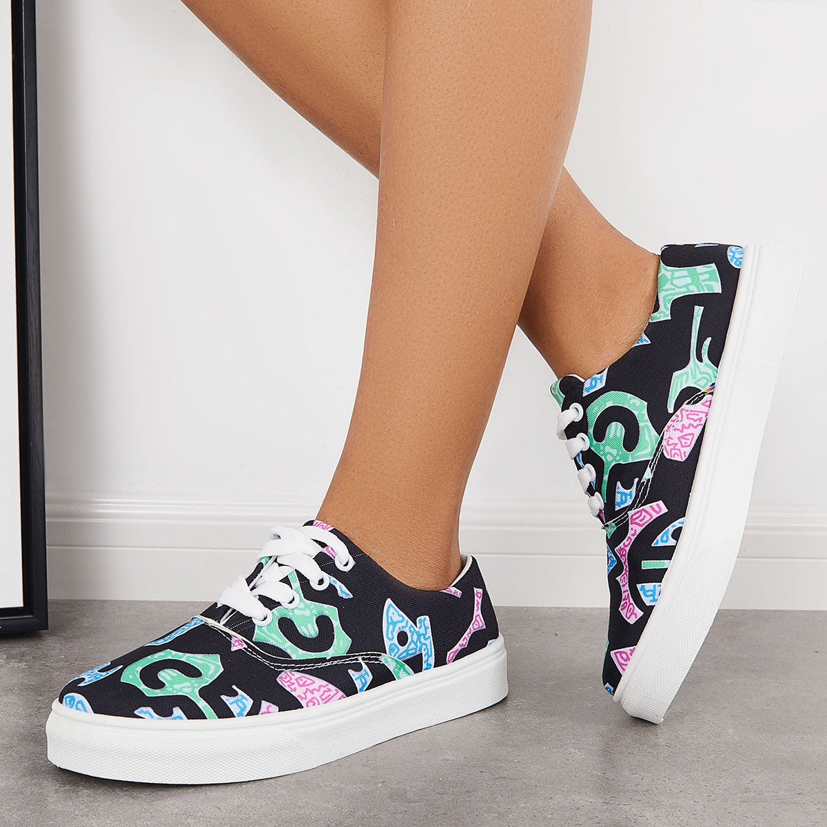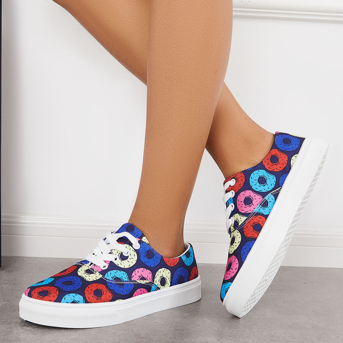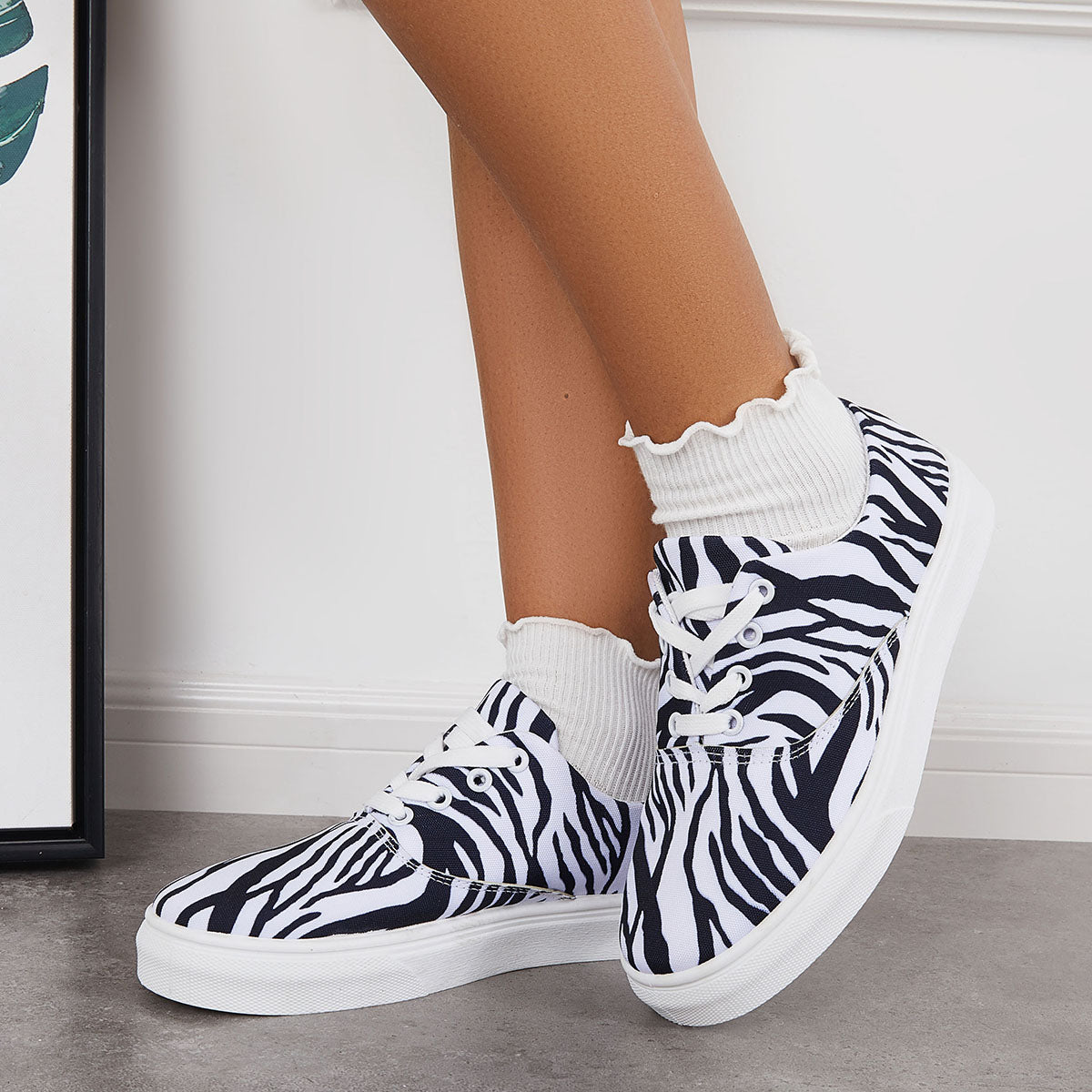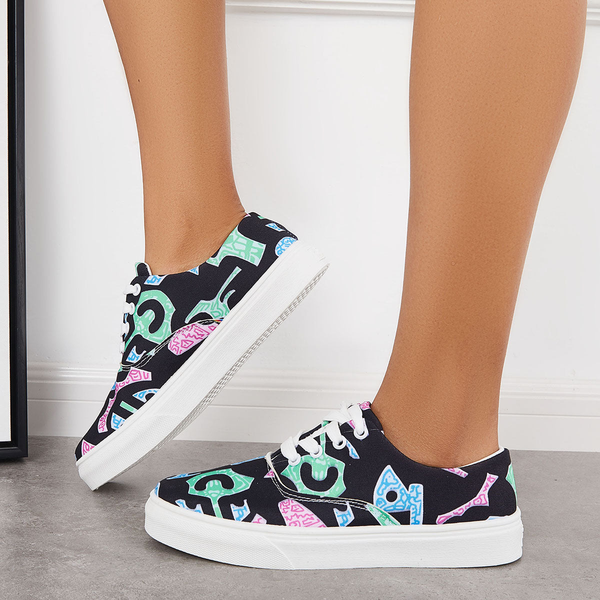 Canvas Lace Up Sneakers Flat Heel Walking Shoes