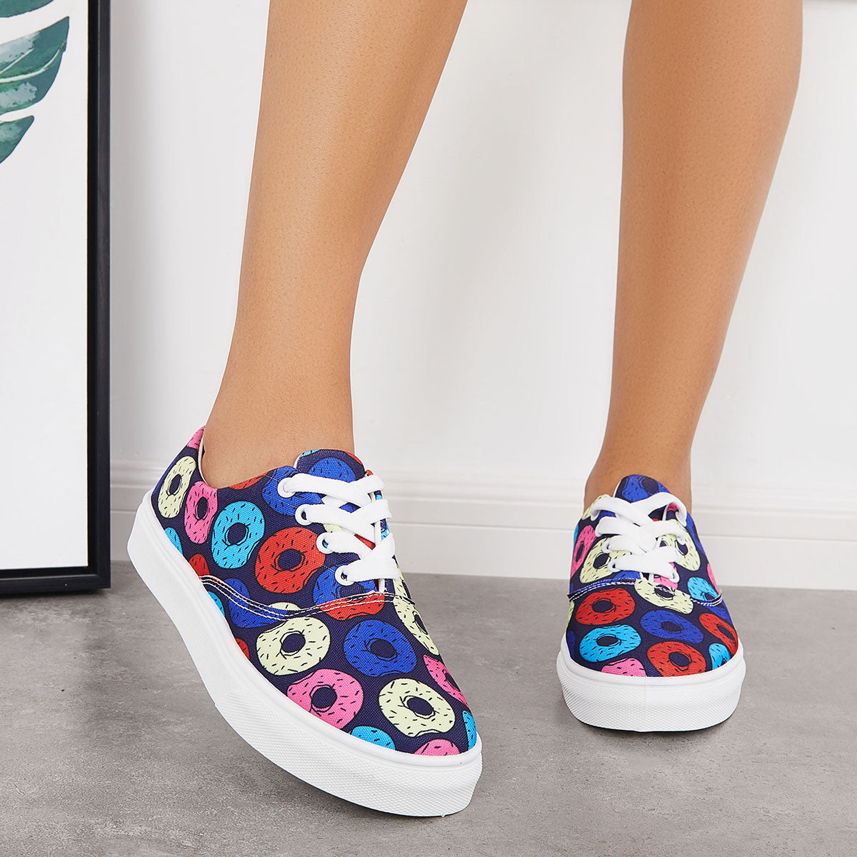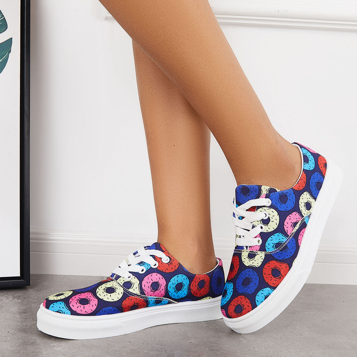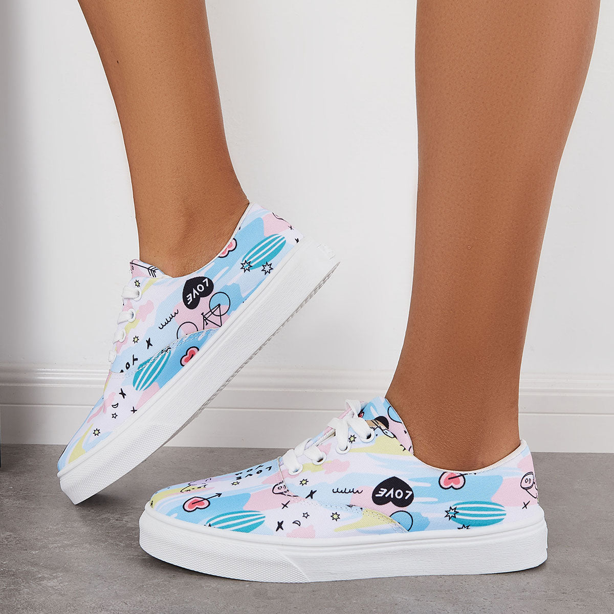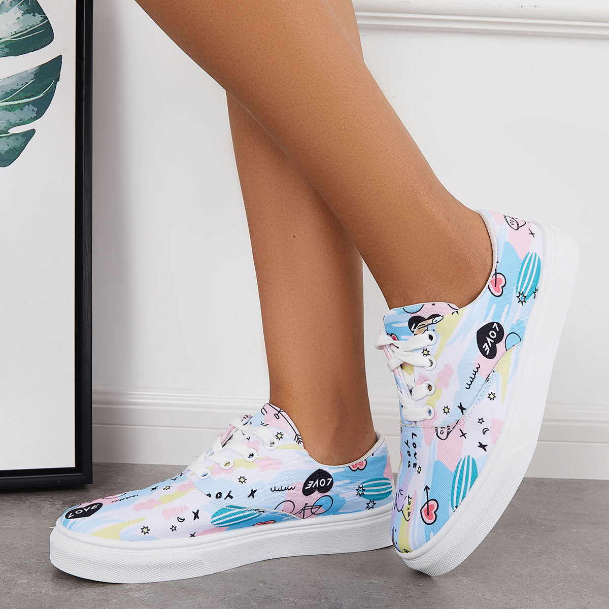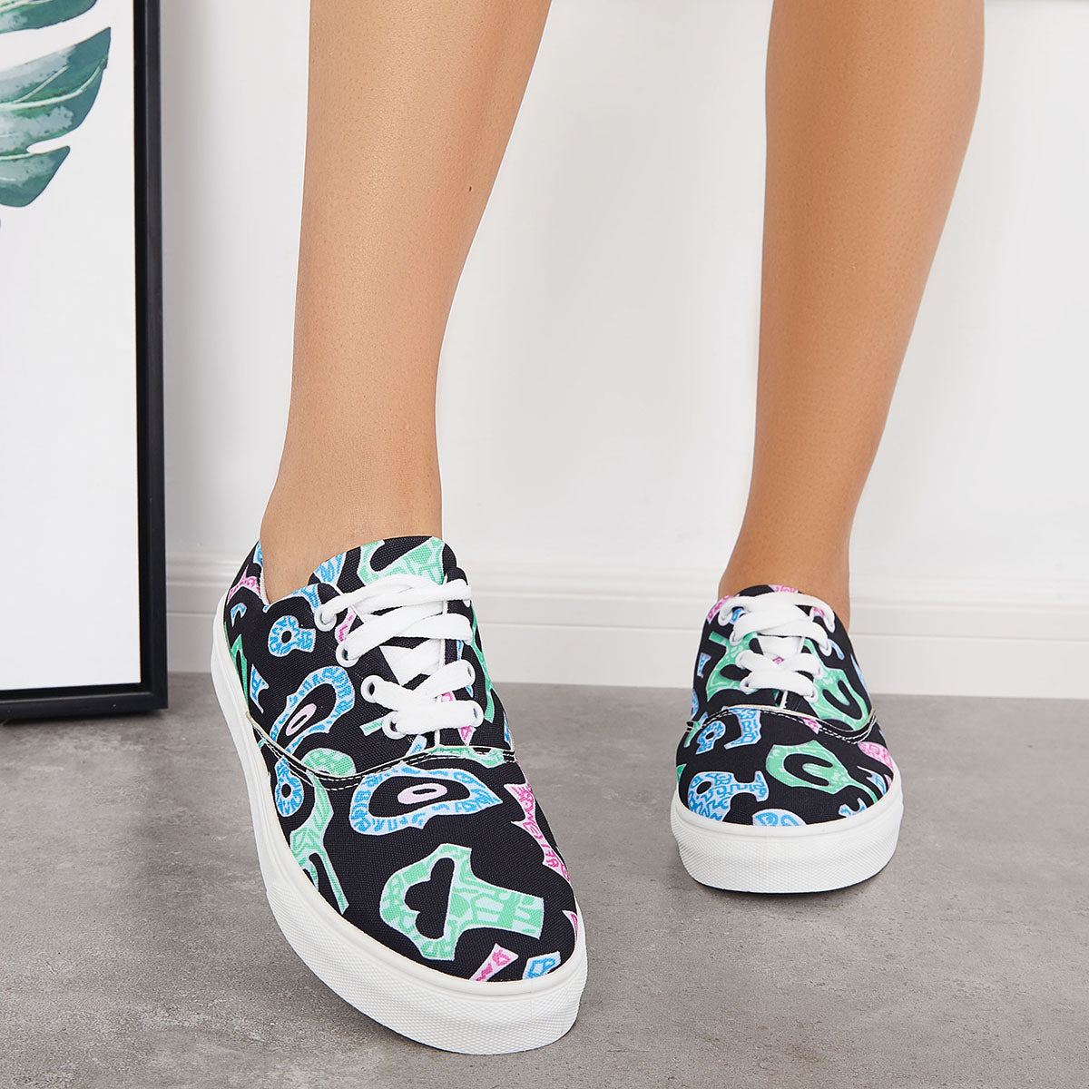 Canvas Lace Up Sneakers Flat Heel Walking Shoes