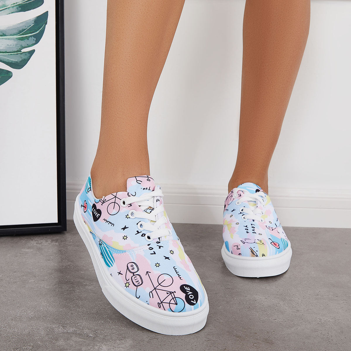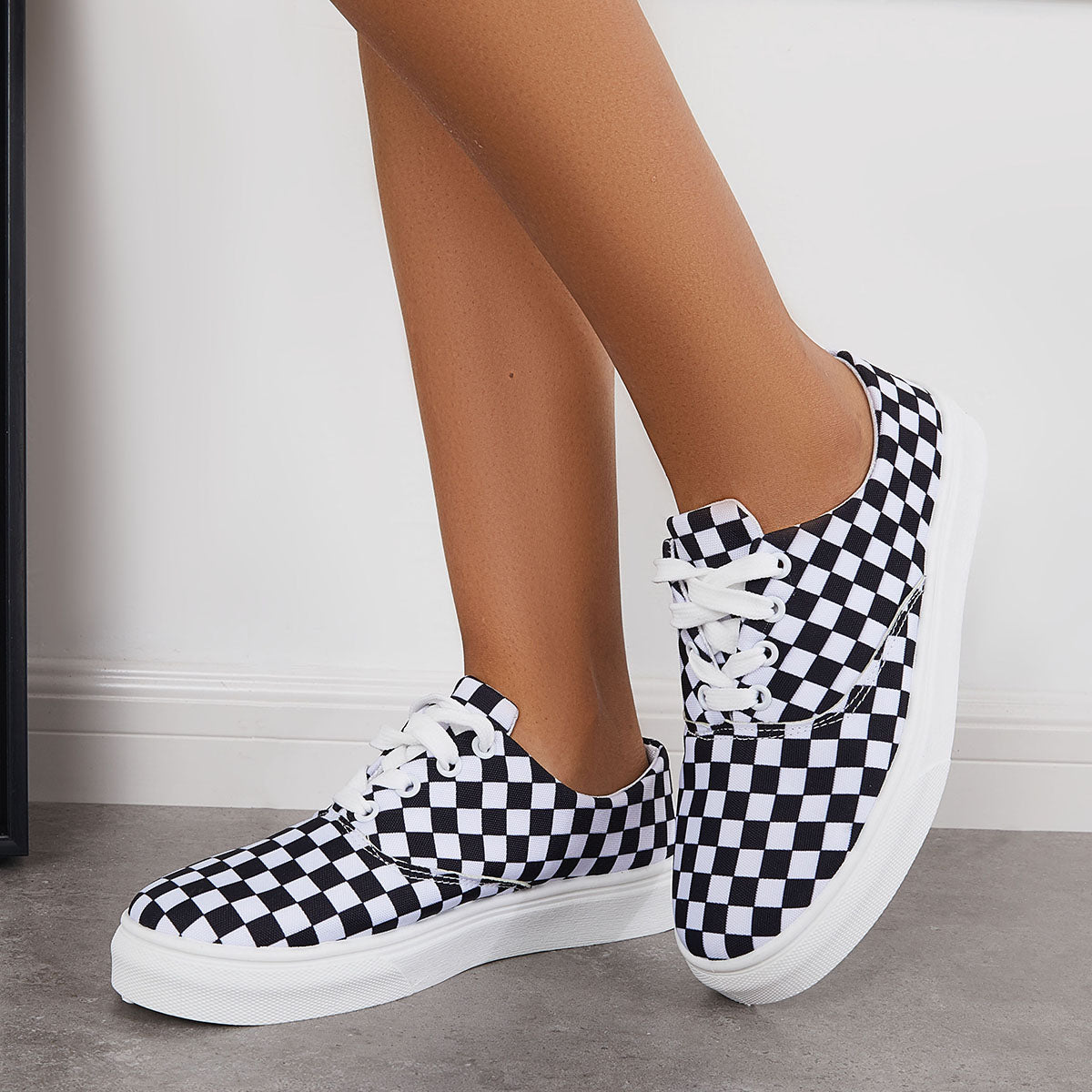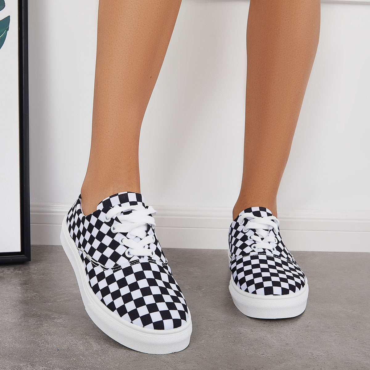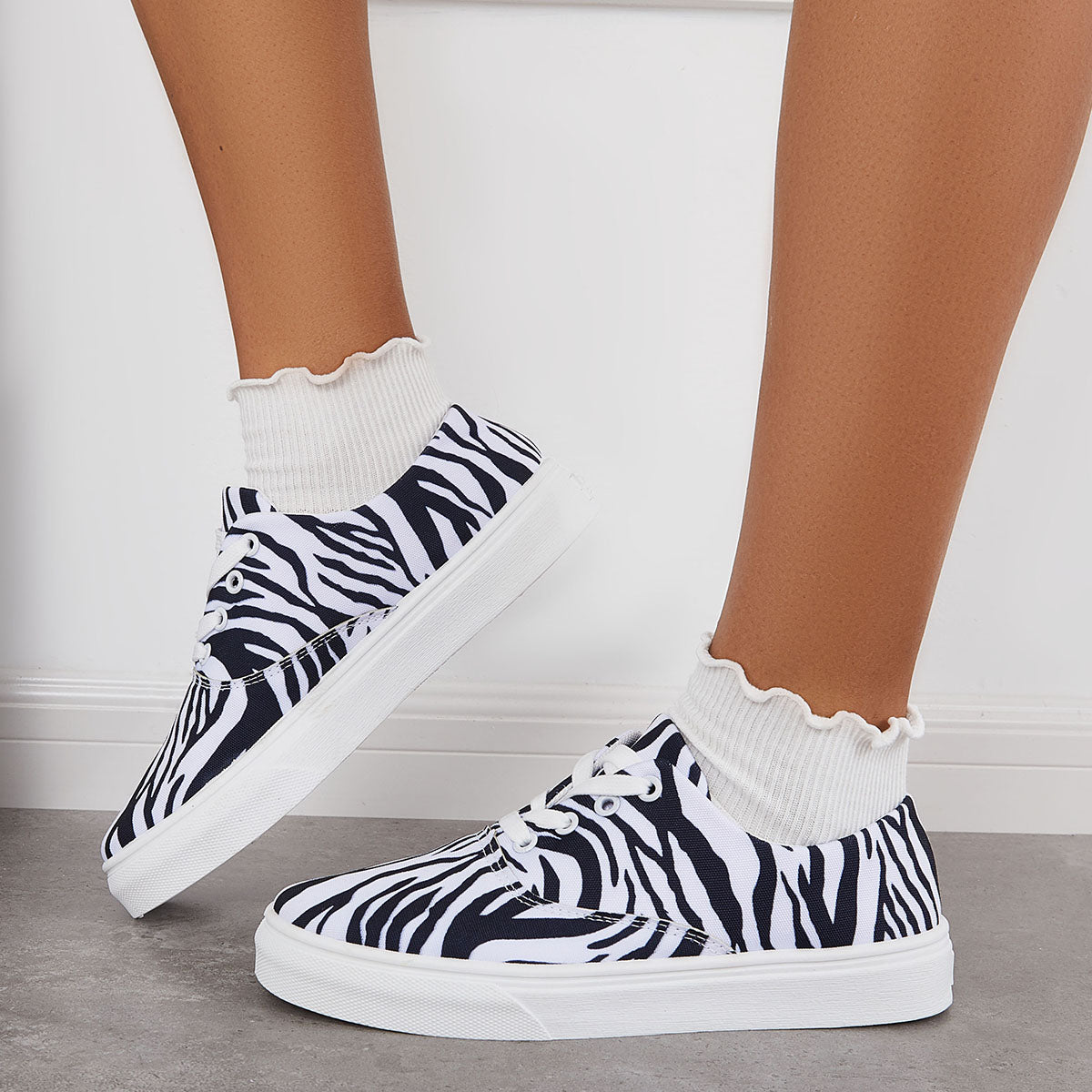 Canvas Lace Up Sneakers Flat Heel Walking Shoes