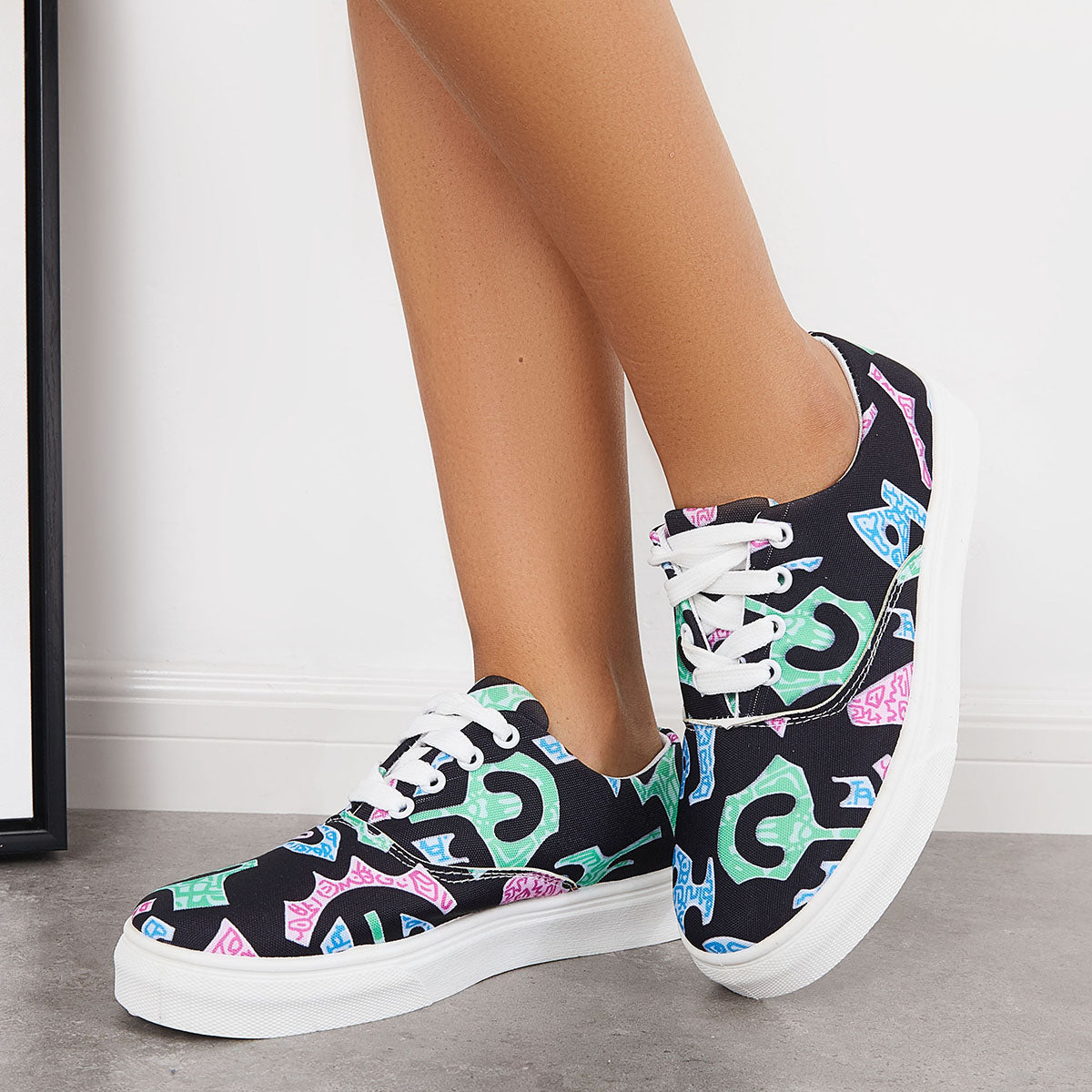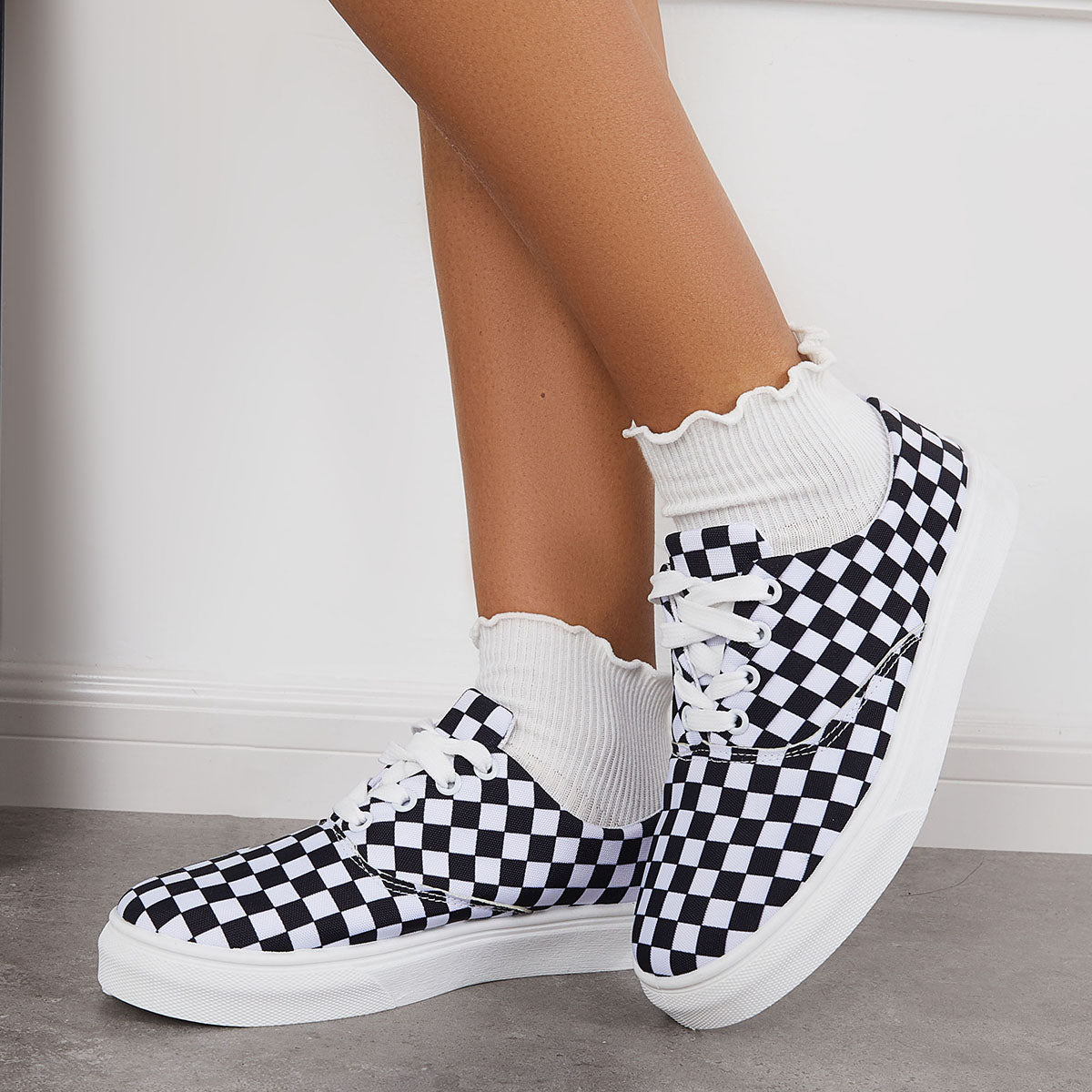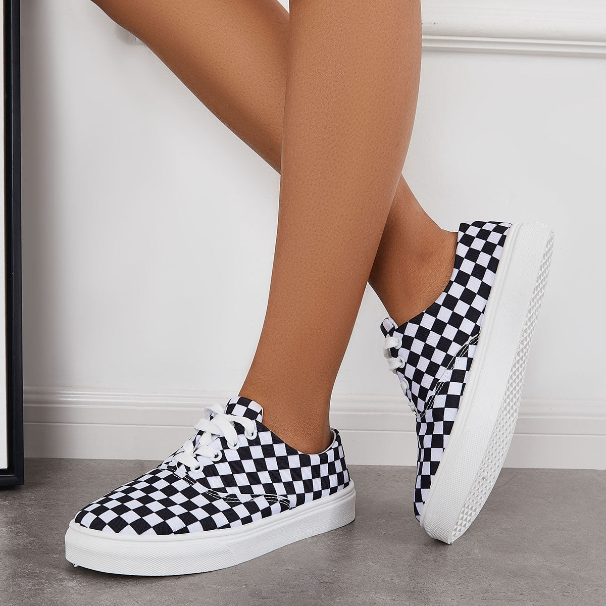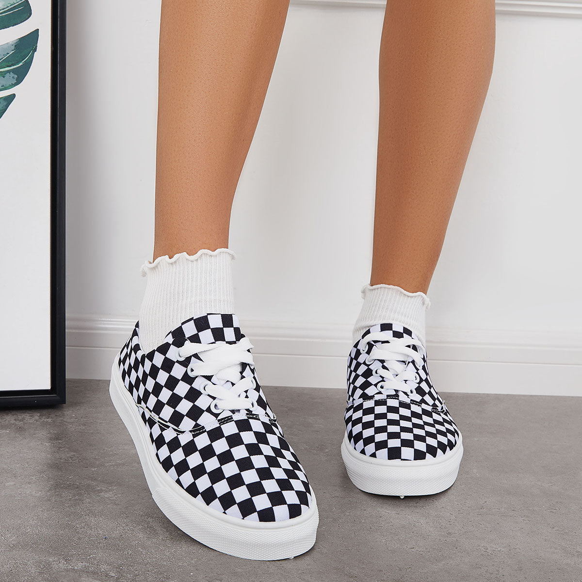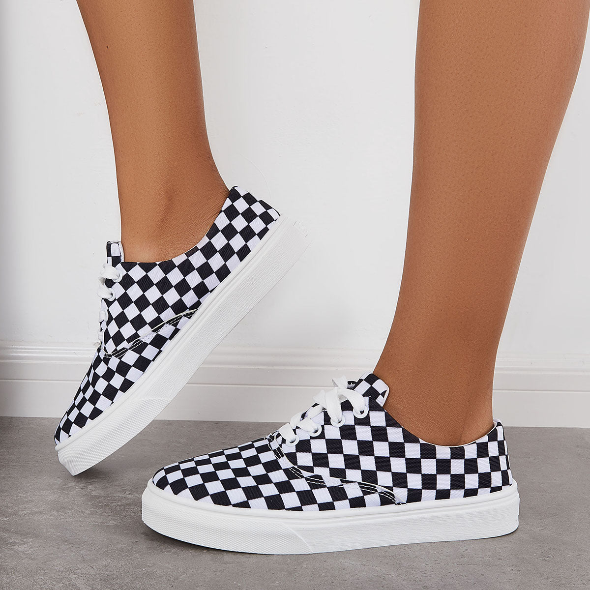Canvas Lace Up Sneakers Flat Heel Walking Shoes