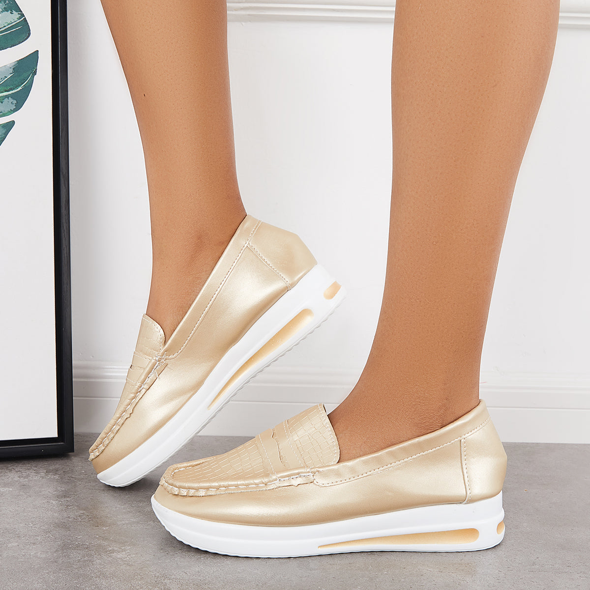 Casual Platform Low Top Loafers Slip on Walking Boat Shoes