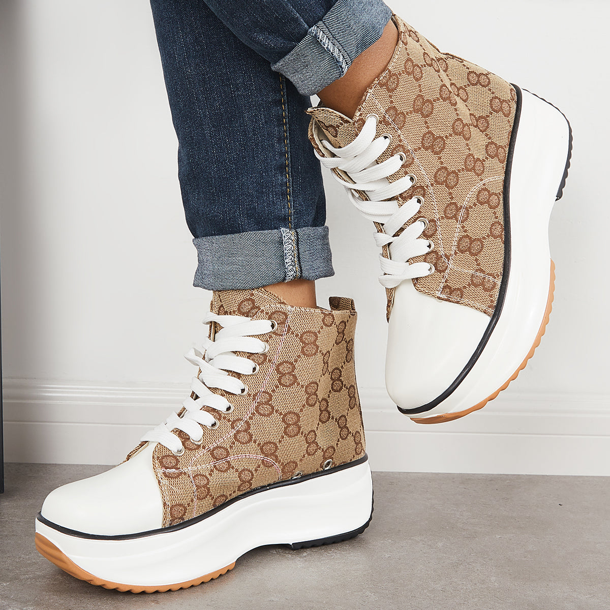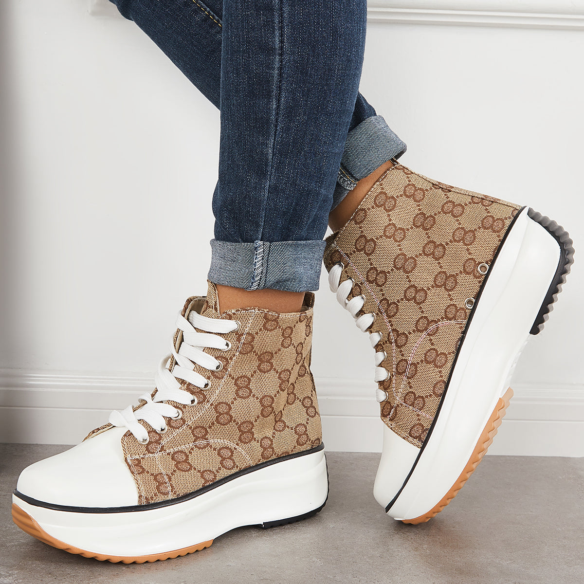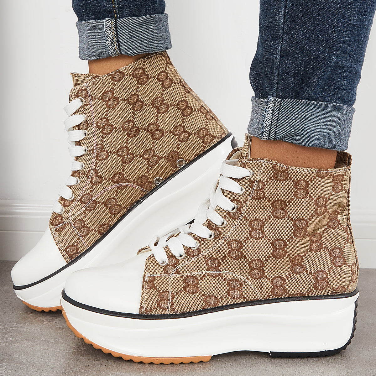 • Platform High Top Canvas Sneakers Lace Up Ankle Boots
