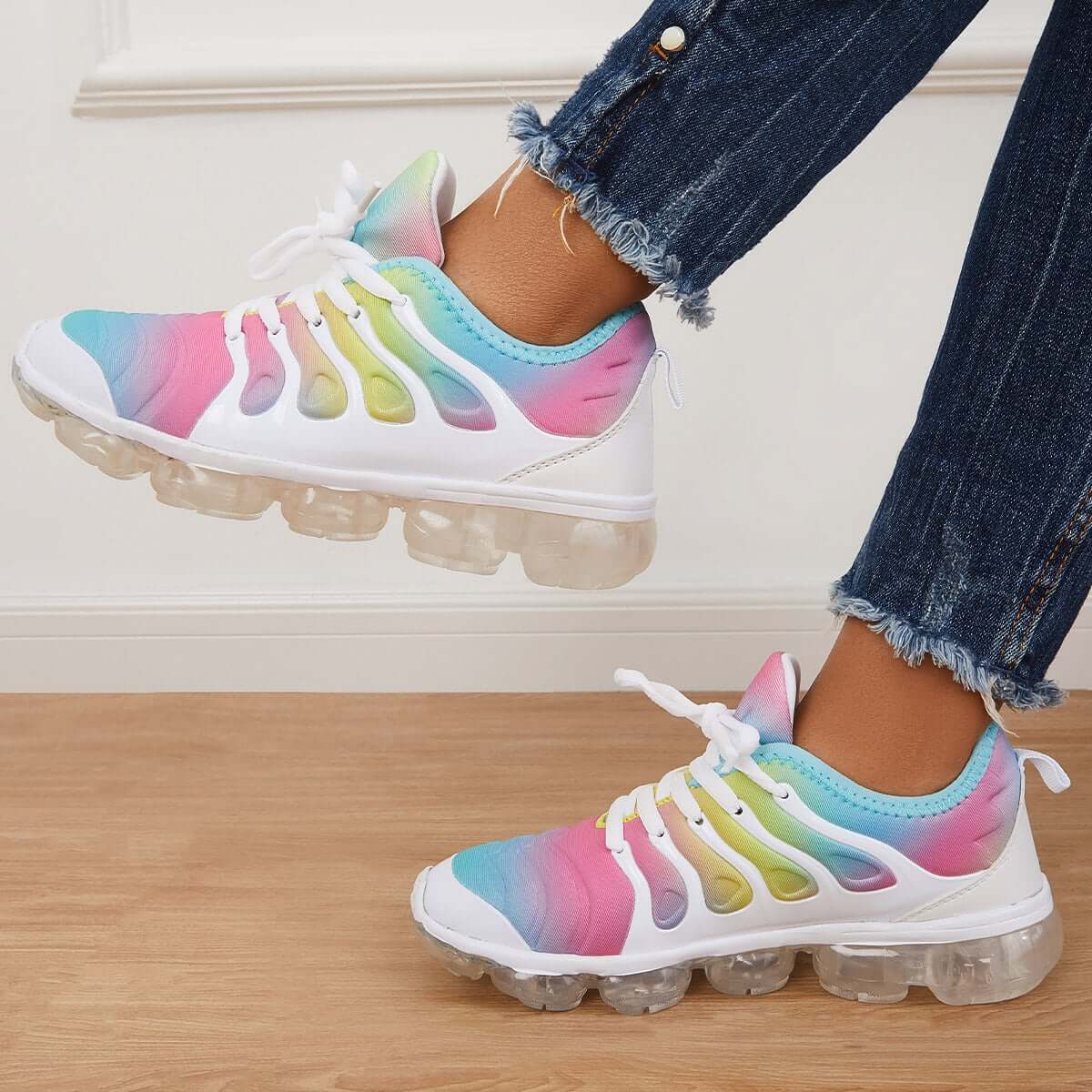 • Rainbow Color Air Cushion Tennis Sneakers Lace Up Shoes