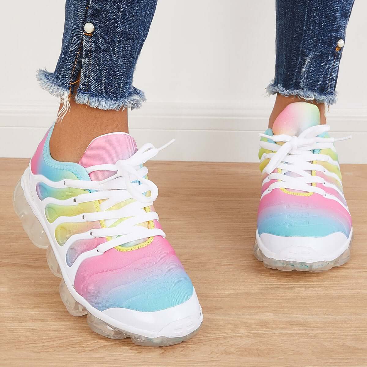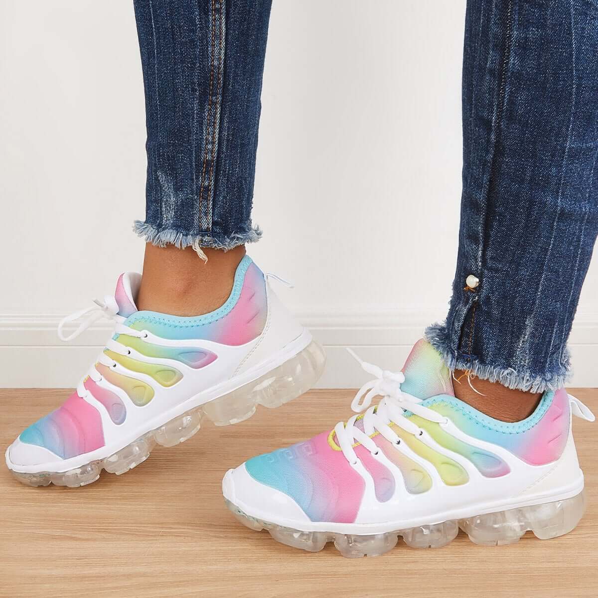 Rainbow Color Air Cushion Tennis Sneakers Lace Up Shoes