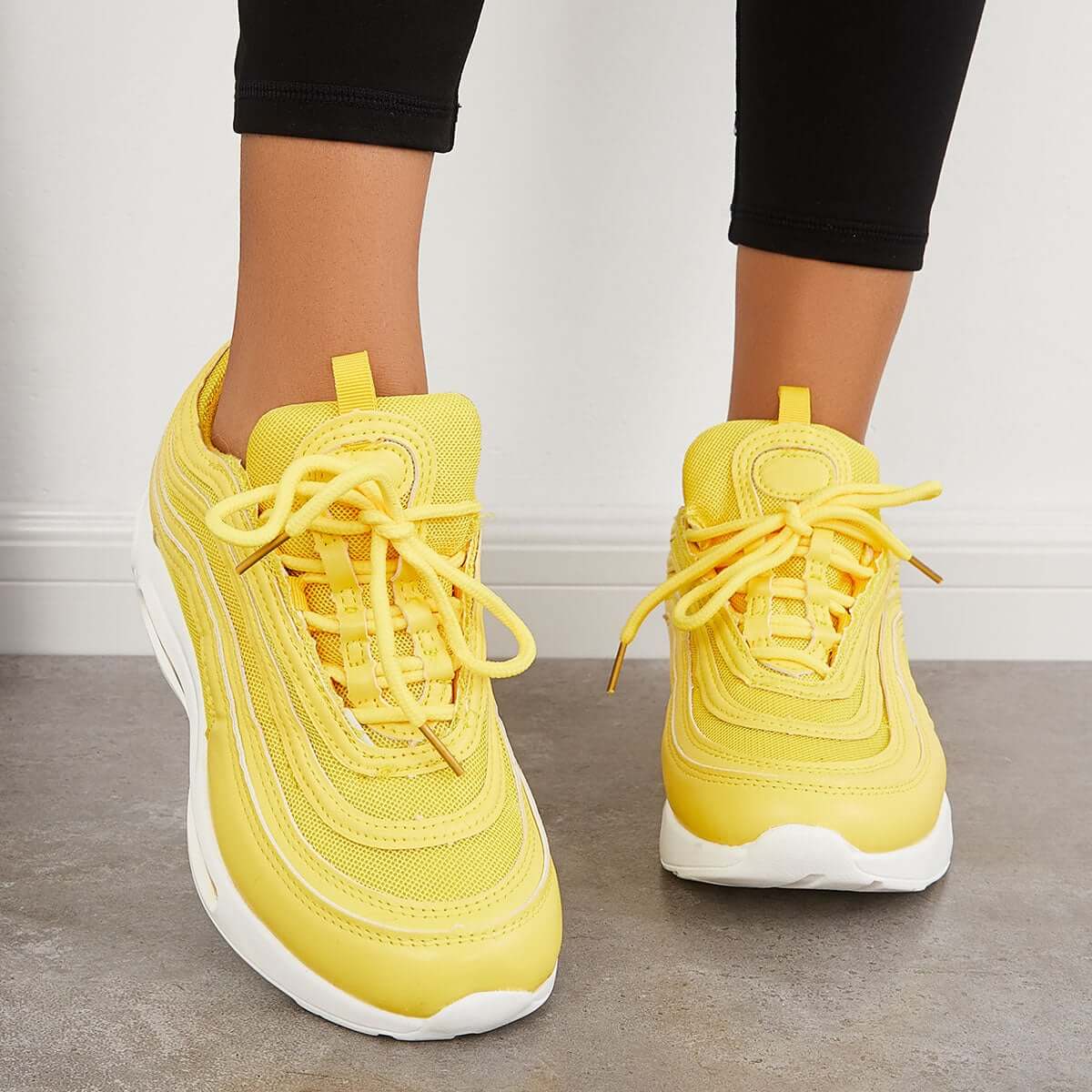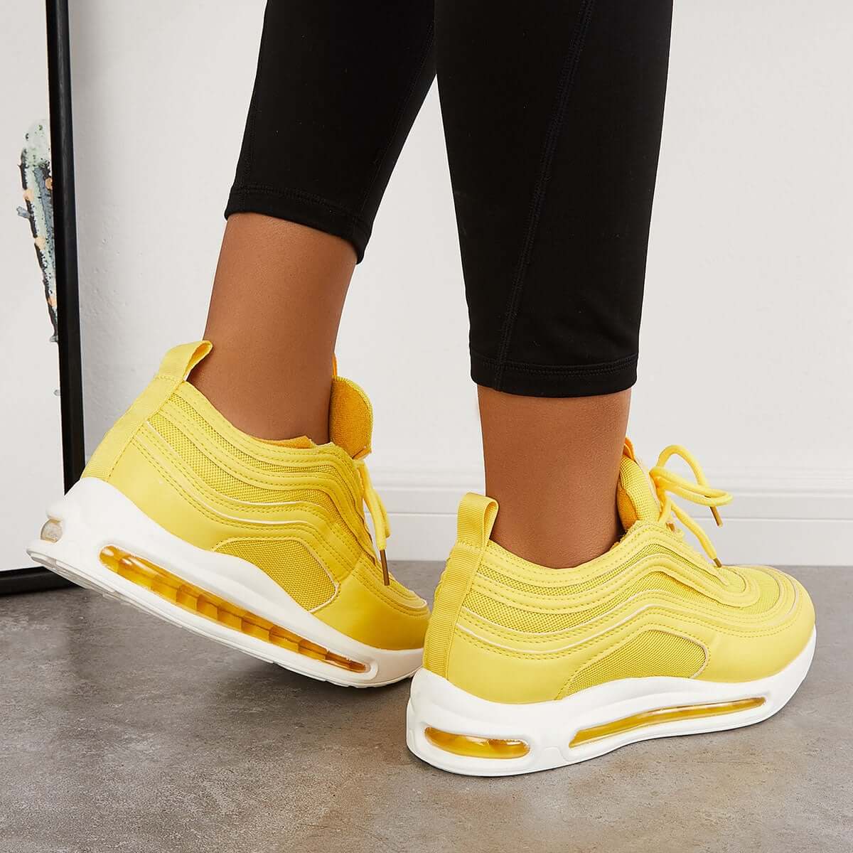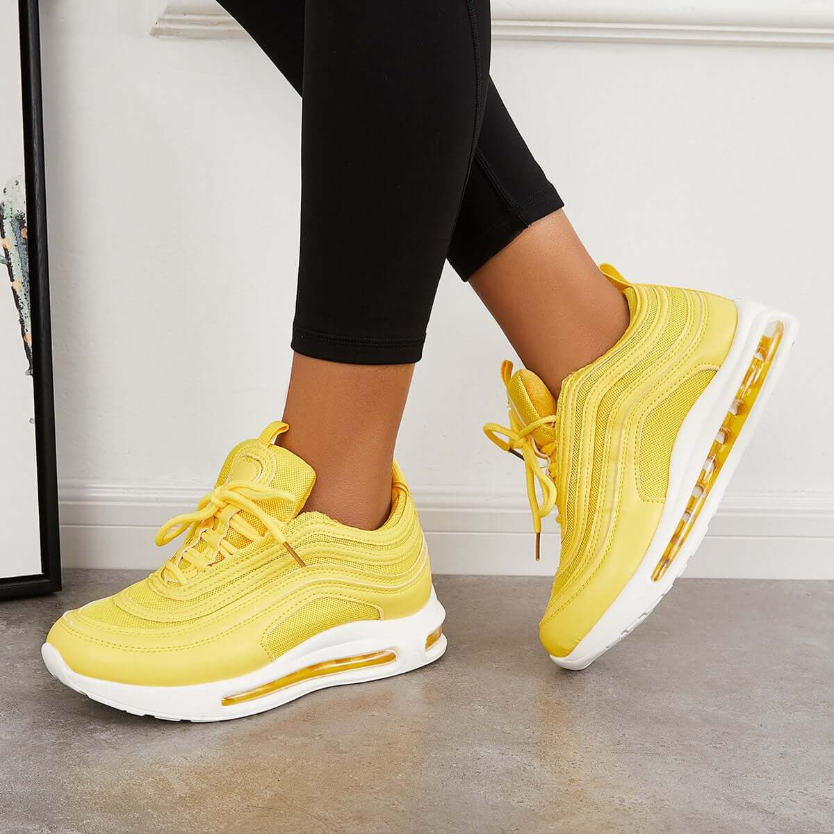 • Yellow Lace Up Air Cushion Sneakers Breathable Running Shoes